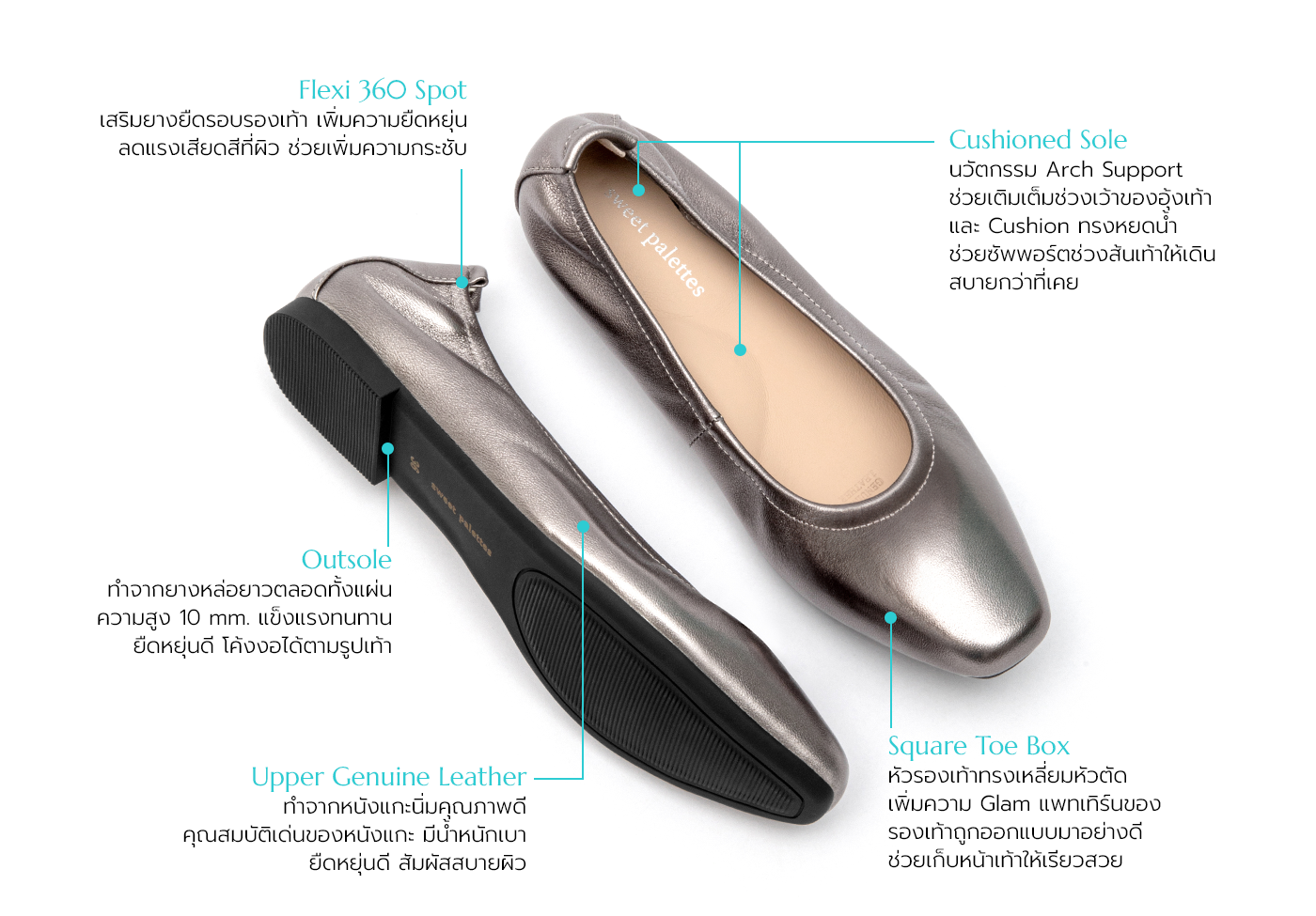 Ballet Light Square Gun Metal 34