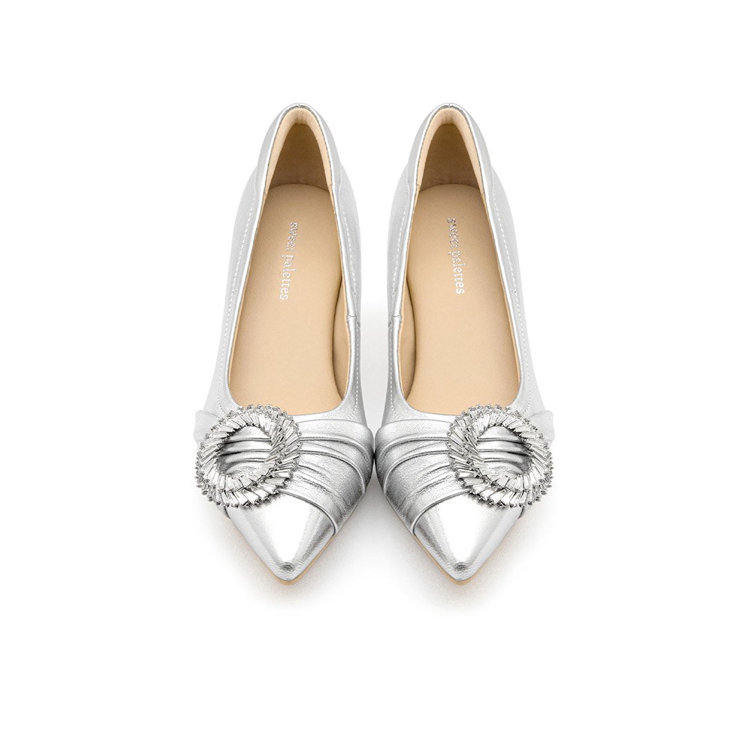 หัวรองเท้าแหลมพอดี ถูกปรับแต่งความโค้งเว้าให้เข้ากับเท้าสาวเอเชียได้อย่างพอเหมาะ ช่วยพรางหน้าเท้าให้เรียวเป็นธรรมชาติ ไฮไลต์ของรุ่นนี้อยู่ที่บัคเคิลที่ทำจากกระจกเกรดเดียวกับที่ใช้ในการผลิตขวดน้ำหอมฝรั่งเศส มอบคุณสมบัติแวววาวให้ประกายสวย ผ่านการเจียระไนมาอย่างพิถีพิถันก่อนจะถูกร้อยเรียงด้วยมือโดยช่างฝีมือ ซับในหนังแกะสั่งฟอกมาพิเศษเพื่อความนุ่มละมุน สร้างสัมผัสอ่อนโยนต่อผิว มาพร้อมกันกัดในตัวด้านหลังเท้าใส่ได้ทั้งวันโดยไม่เจ็บ